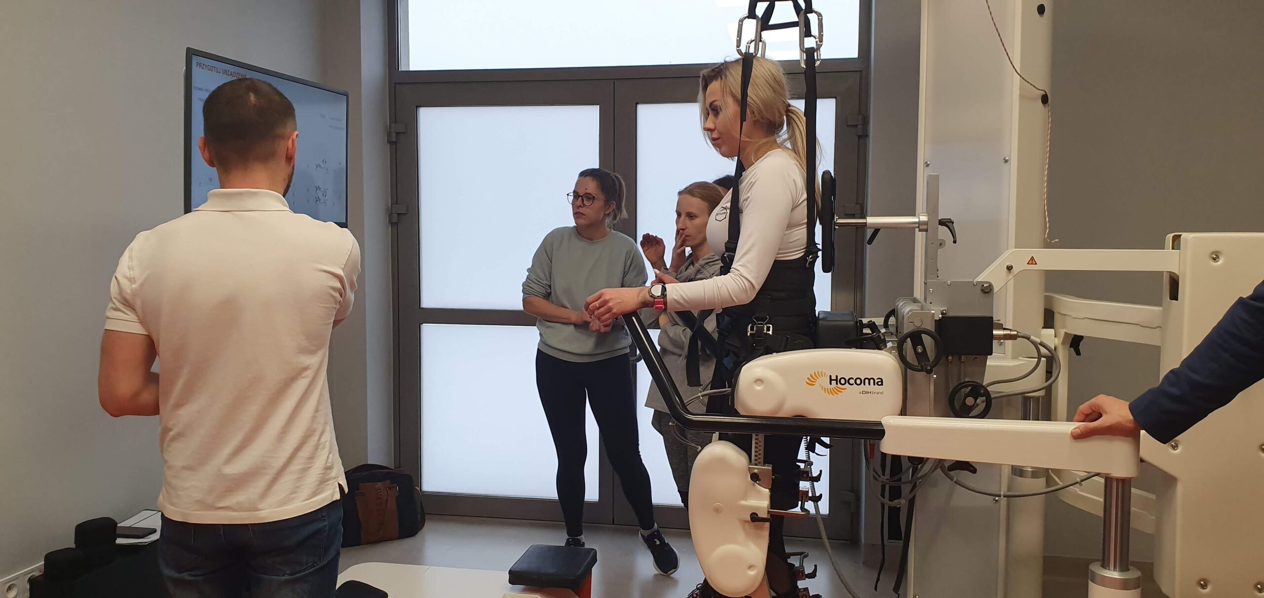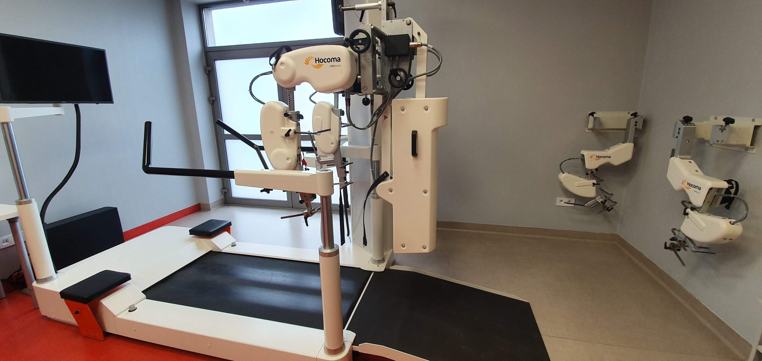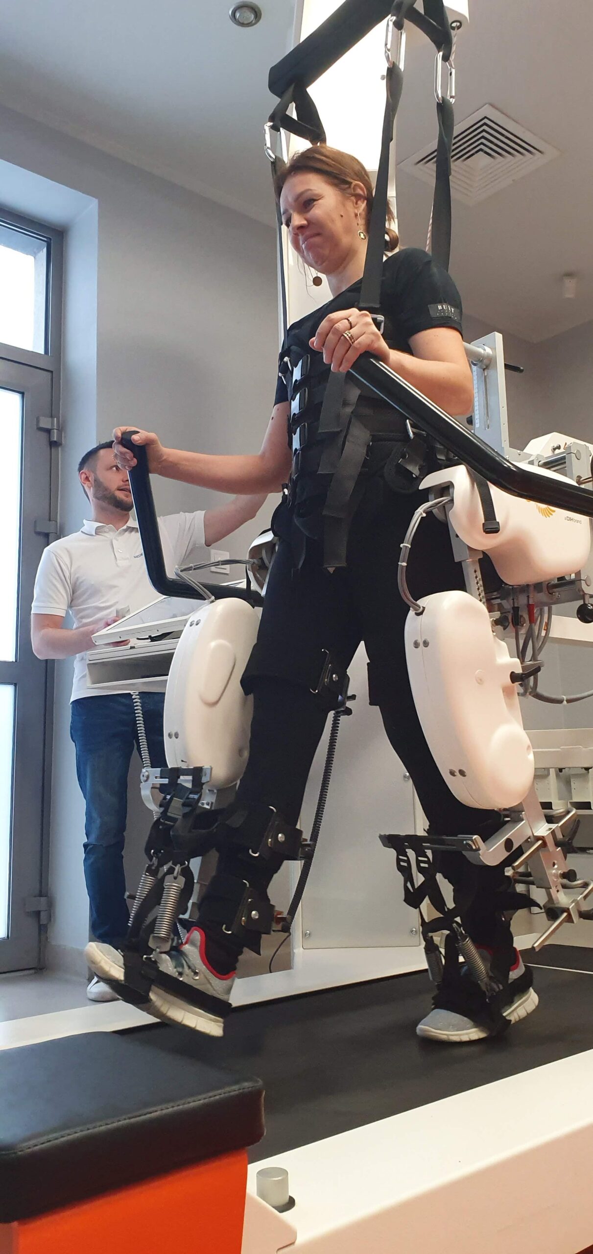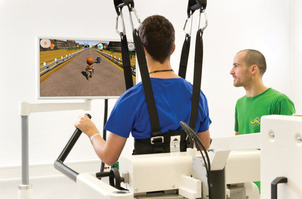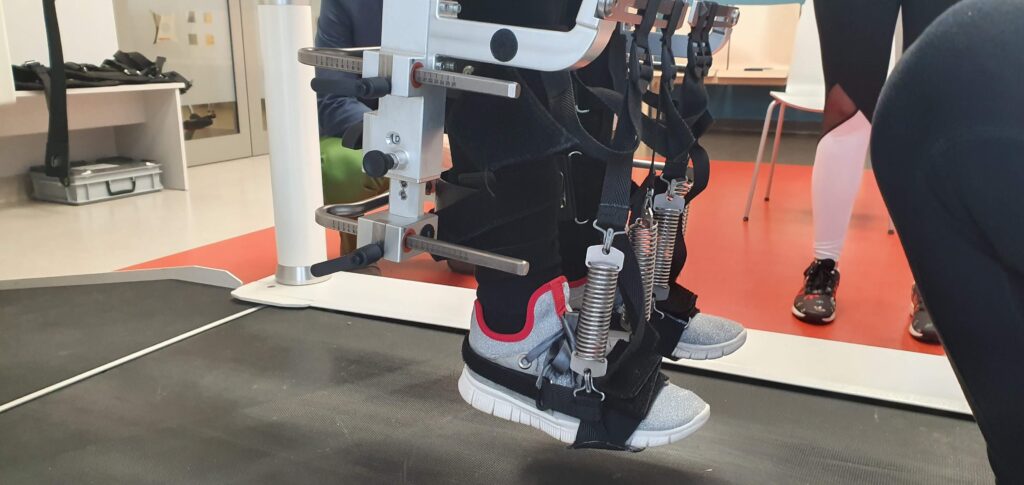- zrobotyzowane ortezy prowadzą nogi pacjenta po bieżni, zapewniając w ten sposób wiele możliwości treningu