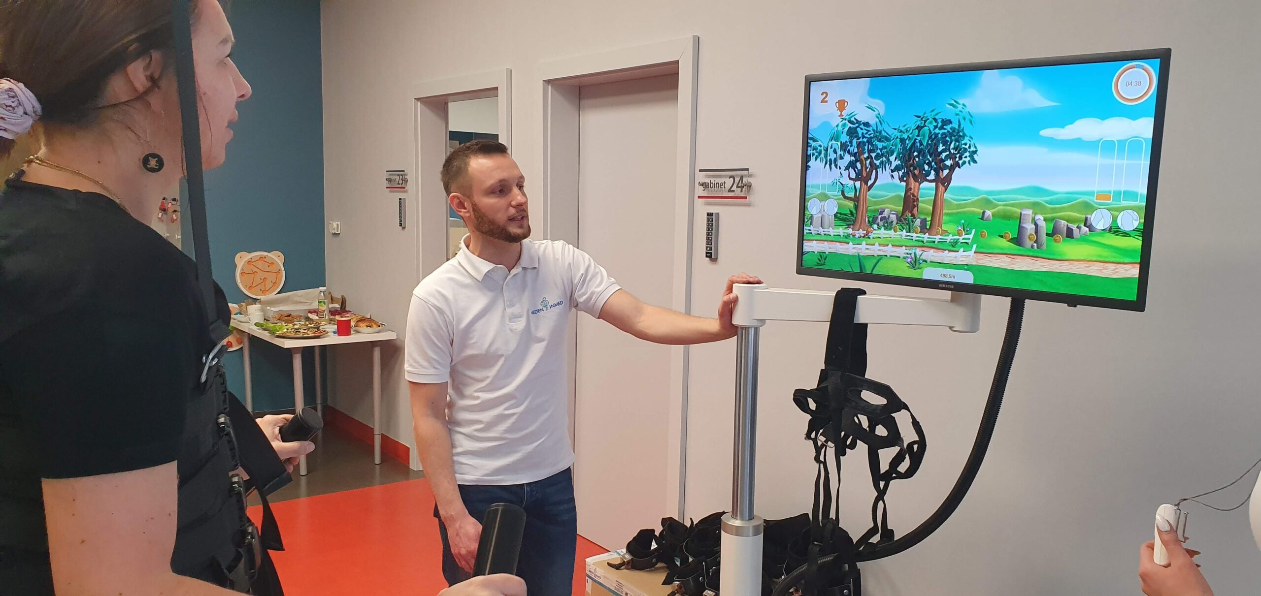 Trening polega na maksymalnym zaangażowaniu chorego w rozwiązywanie zadań wyświetlanych na ekranie monitora zintegrowanego z komputerem urządzenia, dzięki zastosowaniu wirtualnej rzeczywistości rehabilitacja przebiega o wiele sprawniej.